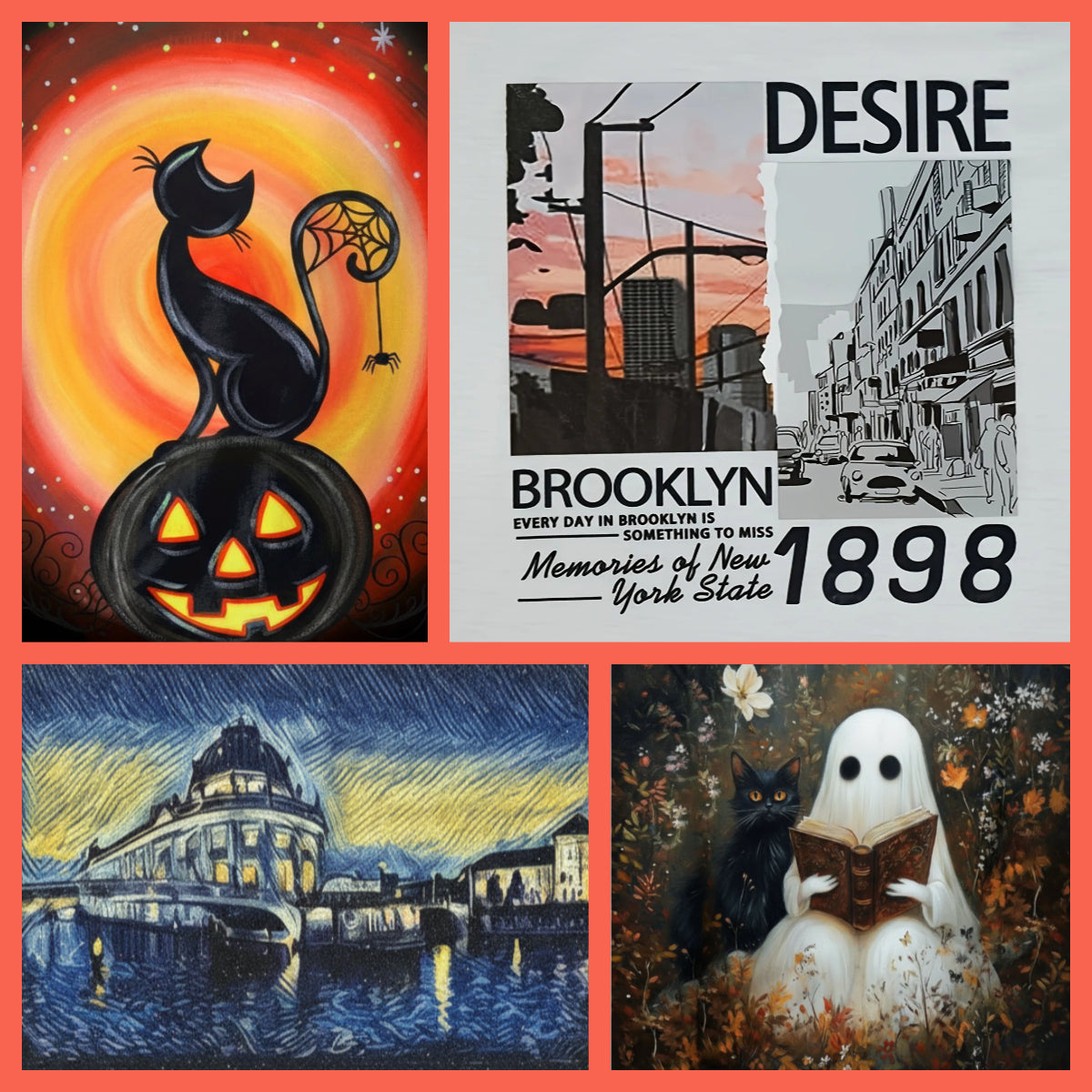 Halloween round-neck long-sleeved T-shirt with cat, pumpkin and animal prints Random shipment